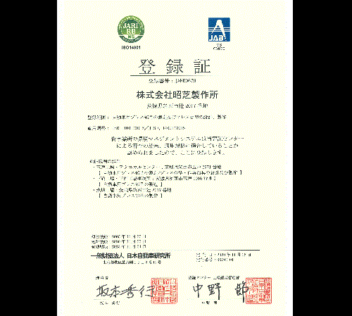 昭芝製作所では、自動車業界が定めた国際規格である品質マネジメントシステムIATF16949を取得し、さらなる品質向上を目指します。