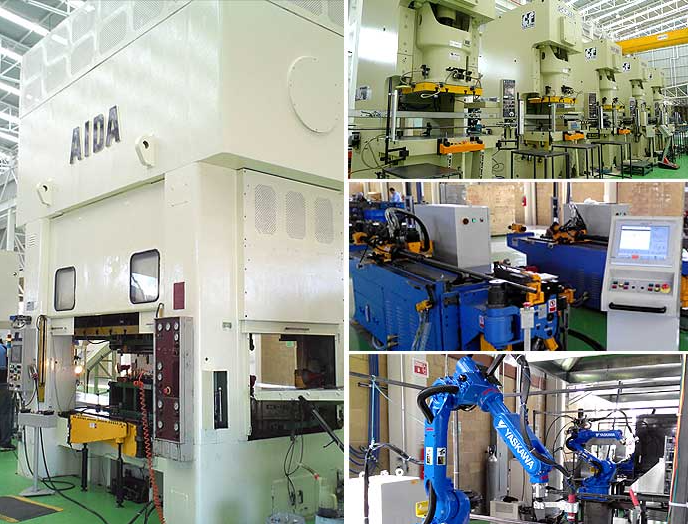 | プレス 600~300t 順送 200t~110t 順送 260t~200t 150t~45t ロボットライン | 3台 2台 7台 7台 3基 |